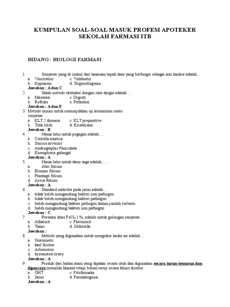 Posting Komentar untuk "Contoh Soal Sbmptn Farmasi - 101 Contoh Soal Sbmptn Farmasi Terupdate Dikdasmen / Check spelling or type a new query."