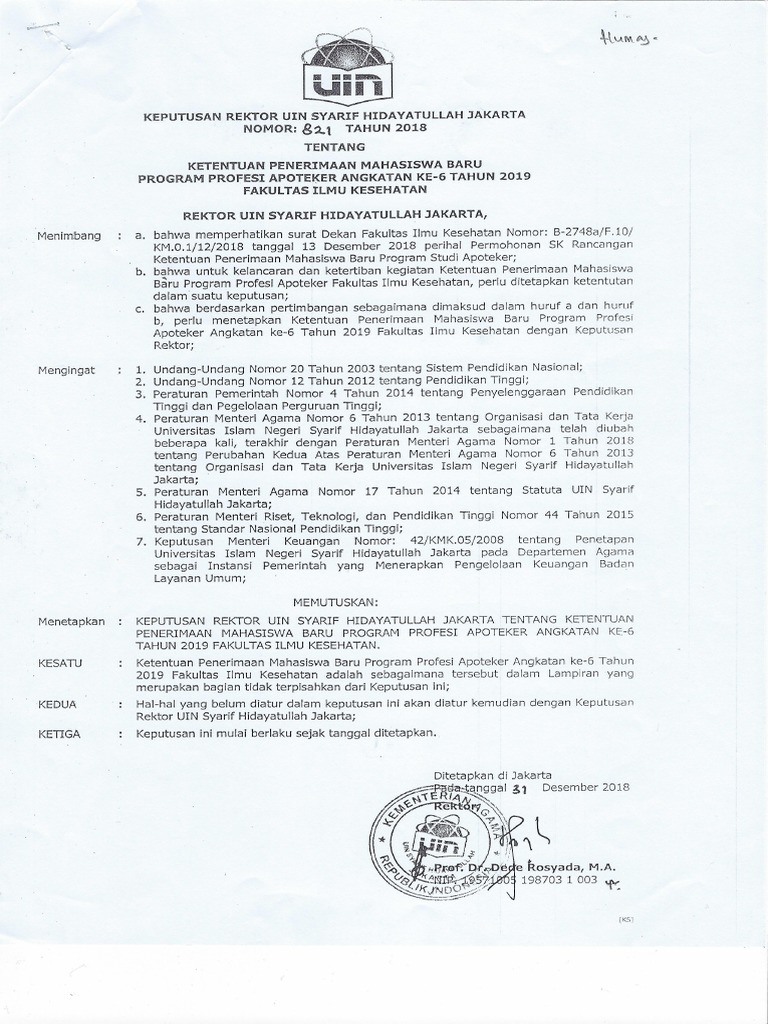 Pendaftaran apoteker uin syarif hidayatullah jakarta 2020.